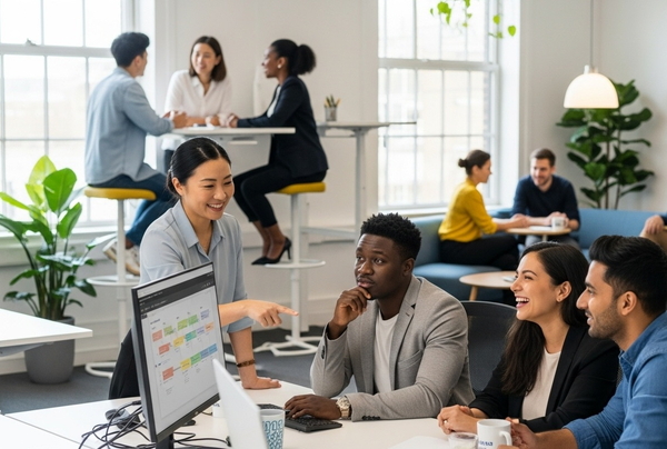 コミュニケーションを活性化することは、従業員同士の連携強化、業務の円滑化、さらには事業アイデアの創出に至るまで、あらゆるポジティブな効果が期待できます。社内横断的なイベント、メンター制度や1on1ミーティングなどを通じたソフト面の施策から、オフィス内にコミュニケーション活性化を促す仕掛けを散りばめるハード面の施策まで、多方面からのアプローチ手段があります。 - 成長支援とキャリアパスの明確化