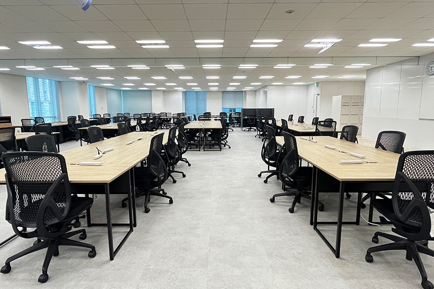 また、レイアウトの全面見直しにあわせて、新人研修用のセミナースペースを新設。研修期間外は執務スペースとしても利用できるようキャスター付きデスクを採用し、チーム体制や業務内容に応じて柔軟にレイアウト変更ができる設計としています。