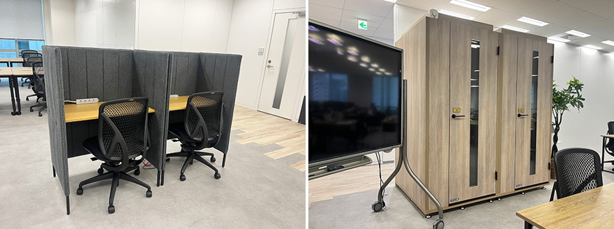 増加するWEB商談に対応し、オープン型・クローズ型のWEBブースをそれぞれ新設。商談内容やシーンに合わせて使い分けができる環境を整え、会議室不足の課題を解消しました。