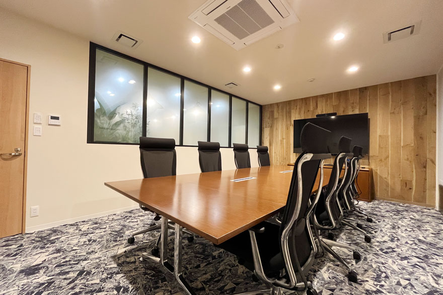 新社屋の建設に伴う、本社移転プロジェクト。お客様が最優先事項として掲げられたのは「環境への配慮」を前提としたオフィスづくりでした。その想いを具現化するため、Nearly ZEB(ニアリー・ゼブ)の認証取得だけでなく、内装材や家具も環境配慮型で統一する計画が立てられました。FRSは内装の設計デザインを担当。企業の姿勢と快適なワークスペースを両立させるオフィス空間を追求しました。